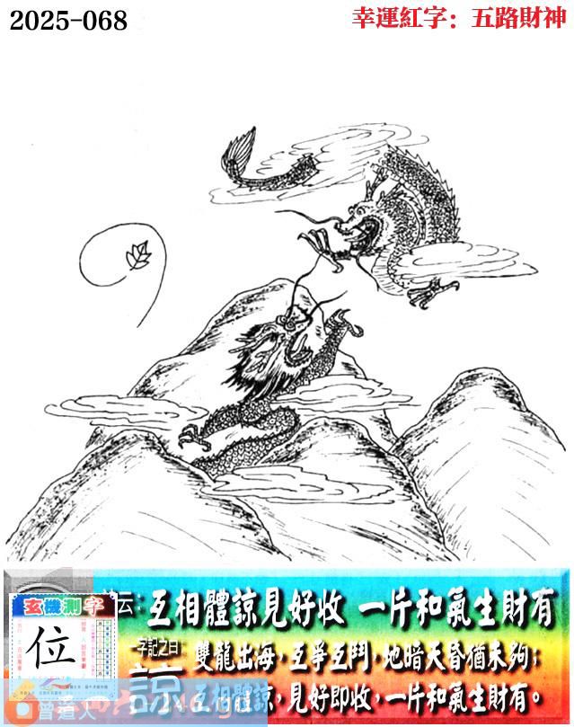 068期老版跑狗一字記之曰:【諒】 詩雲:互相體諒見好收,一片和氣生財有。