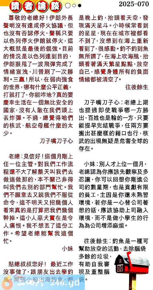 1.尊敬的老總好!伊朗外長聲明沒有達成停火協議,但也沒有否認停火,聲稱只要以色列停火伊朗就停火,這大概就是最後的倔強。目前的情況是以色列達到目的伊朗狠甩了一波飛彈完成了情緒宣洩,川普刷了一次勝利。三赢!所以,在弱肉強食的世界,哪有什麼公平正義,打就打了,你能咋地?真的要慶幸生活在個無比安全的國家,沒有人敢在我們頭上丢炸彈。不過,總覺得咱們的核武、航空母艦什麼的太少。刀子嘴刀子心