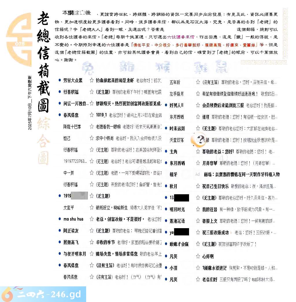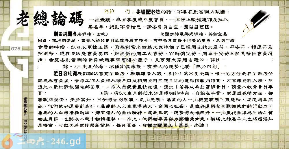075期:六合皇金句/老总论码/萧公子/林大师/五行夺码/老总信箱截图