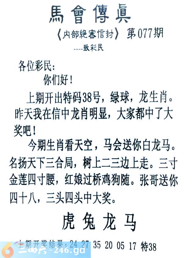 077期:首发推荐:≮馬會傳眞≯→(香港正版)