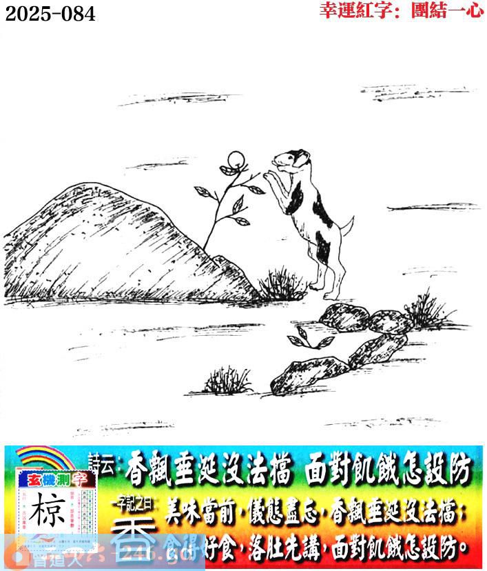 084期老版跑狗一字記之曰:【香】 詩雲:香飄垂涎沒法擋,面對饑餓怎設防。
