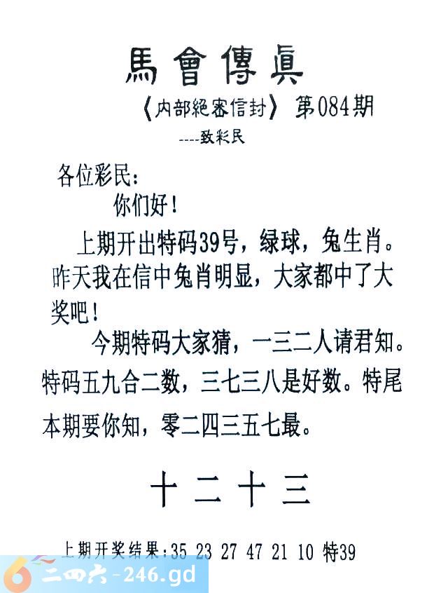 084期:首发推荐:≮馬會傳眞≯→(香港正版)