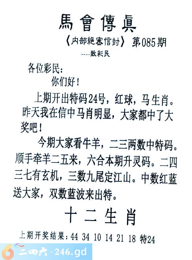 085期:首发推荐:≮馬會傳眞≯→(香港正版)