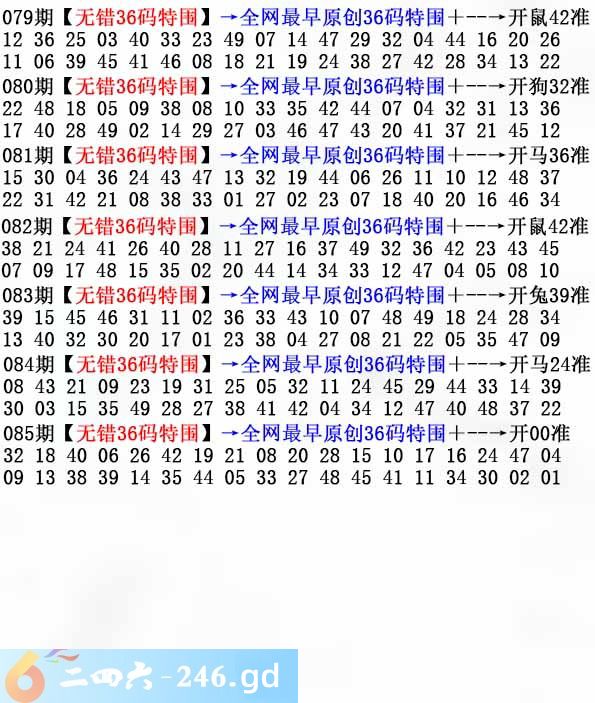 085期:无错36码