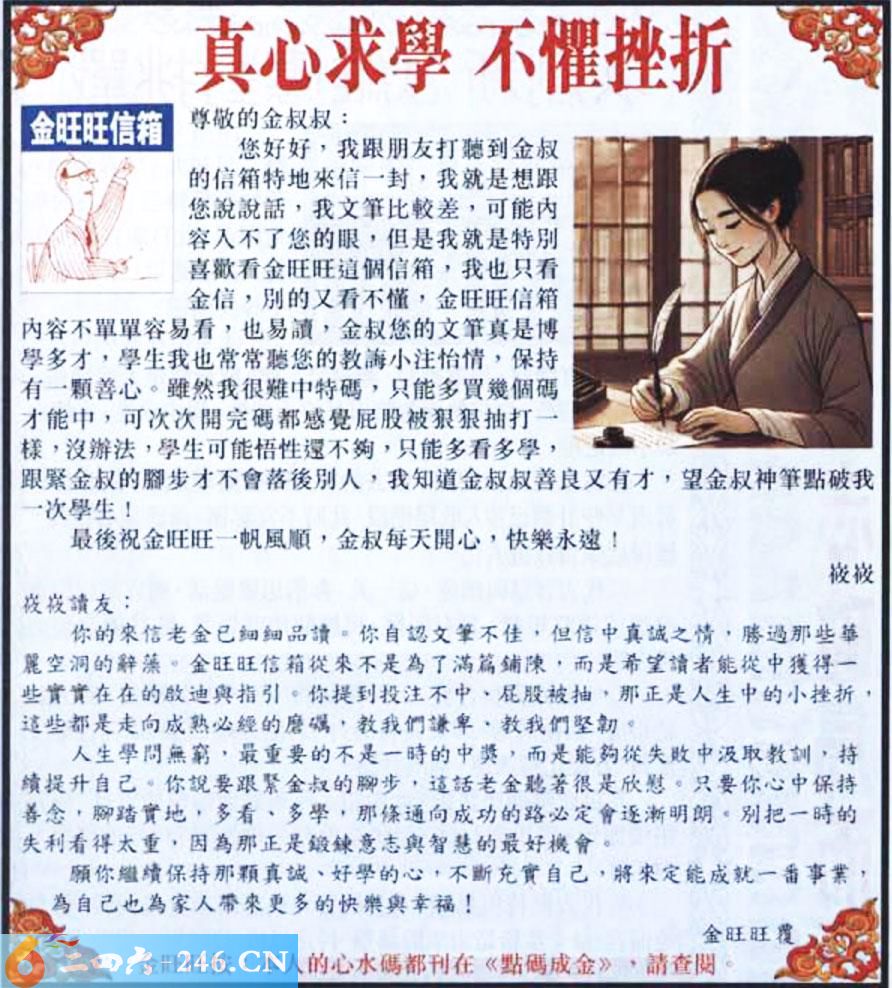 026期:金旺旺信箱彩民推荐→→《真心求學 不懼挫折》