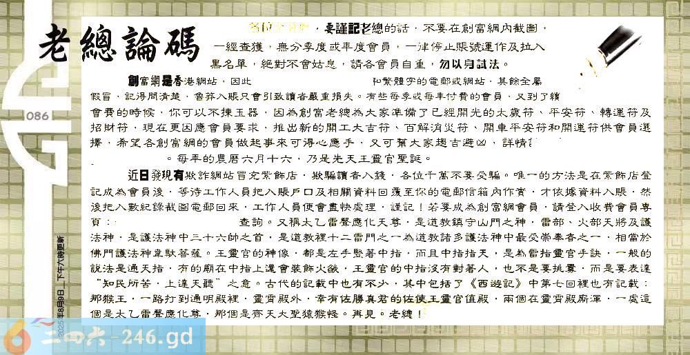 086期:六合皇金句/老总论码/萧公子/林大师/五行夺码/老总信箱截图