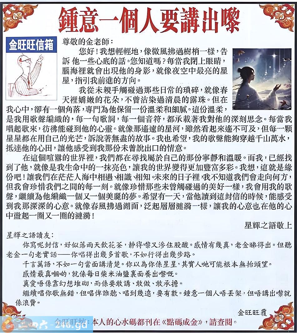 087期:金旺旺信箱彩民推荐→→《鐘意一個人要講出嚟》