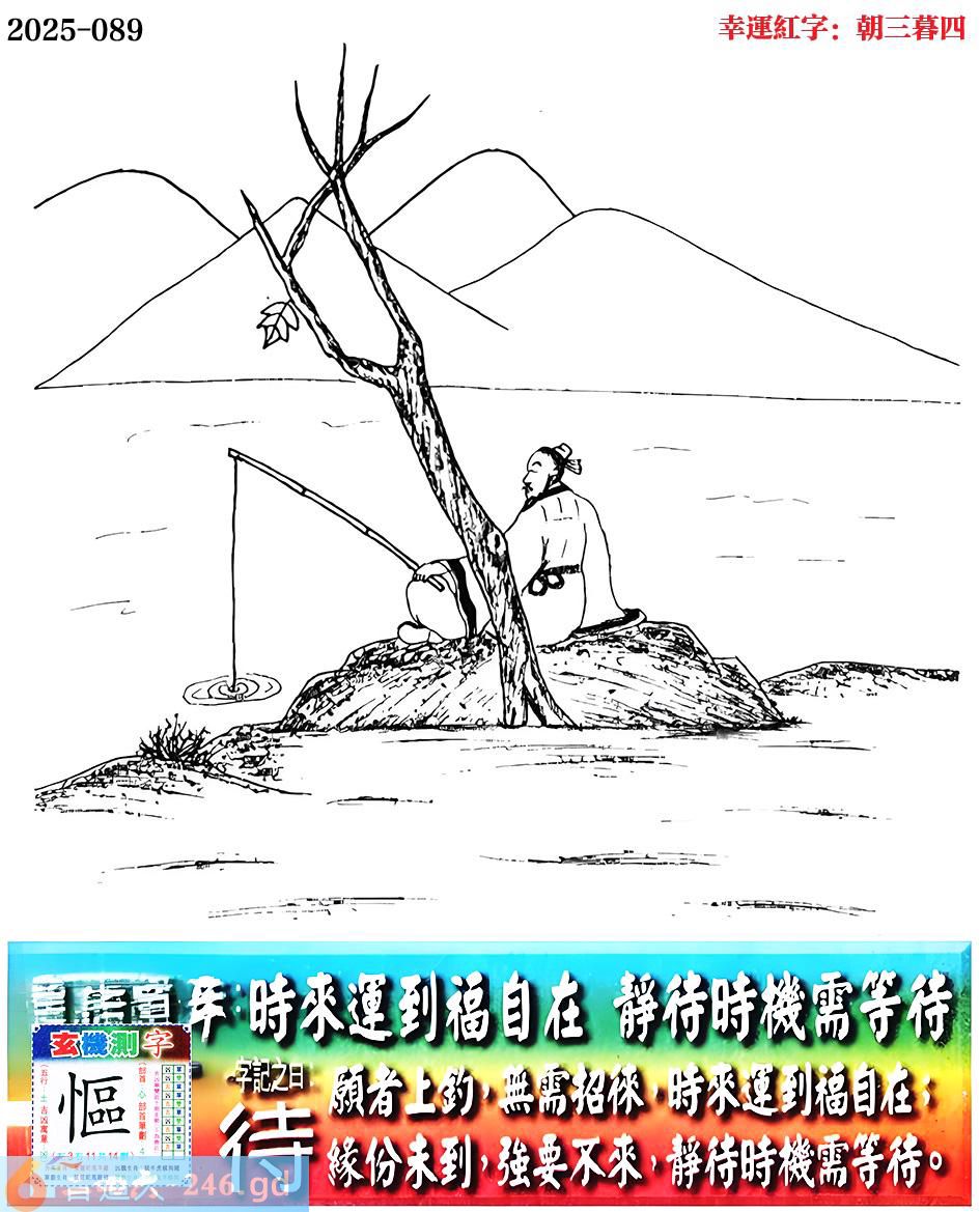 089期老版跑狗一字記之曰:【待】 詩雲:時來運到福自在,靜待時機需等待。