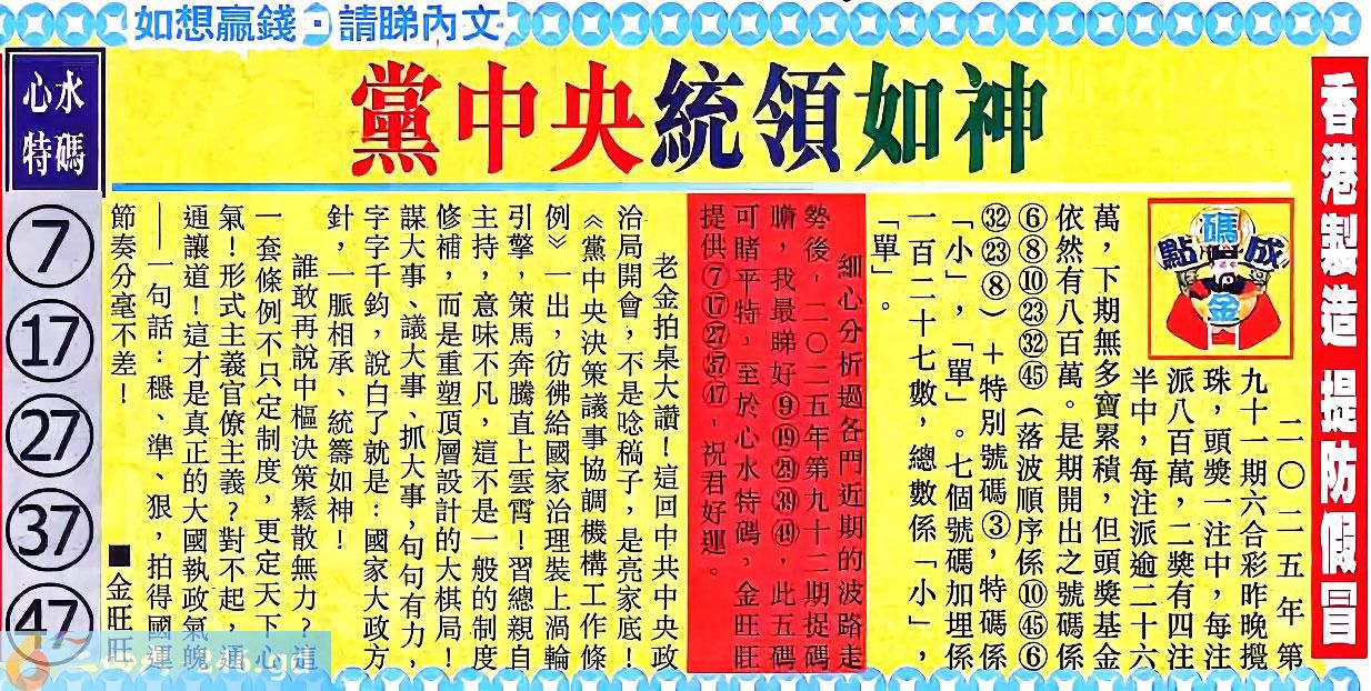 092期:金旺旺信箱彩民推荐→→《玄機唔深 深嘅係個貪字》