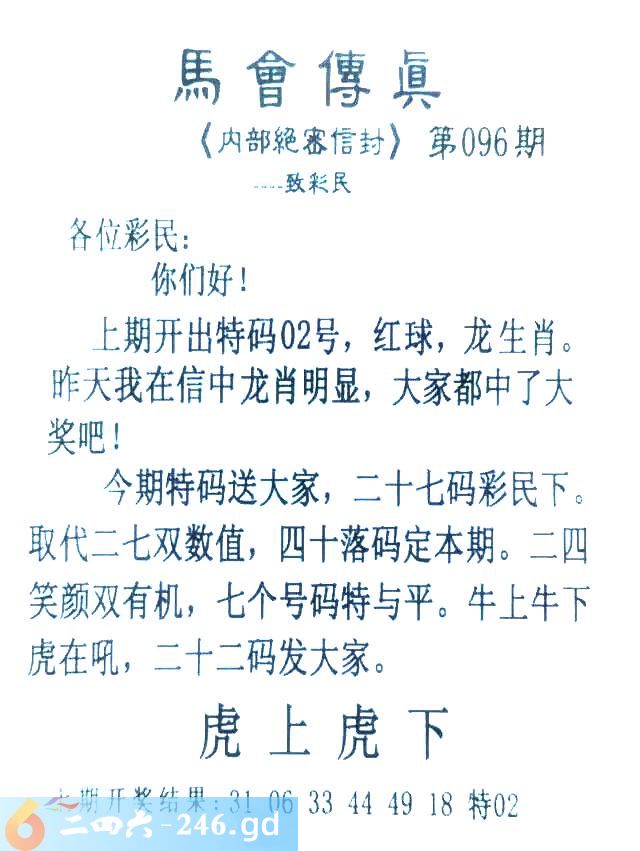 096期:首发推荐:≮馬會傳眞≯→(香港正版)