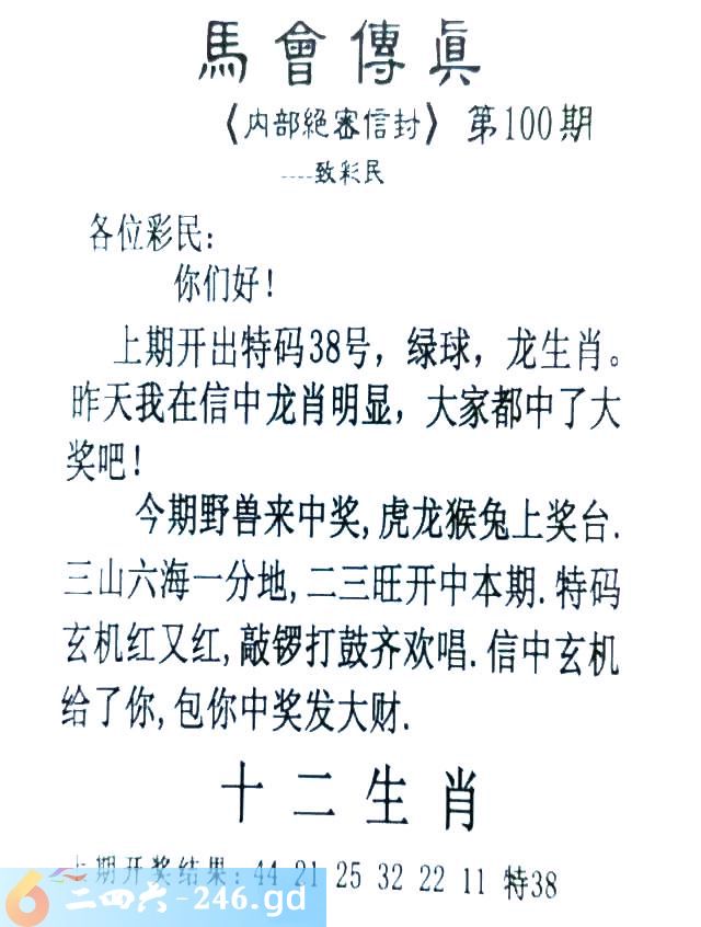 100期:首发推荐:≮馬會傳眞≯→(香港正版)