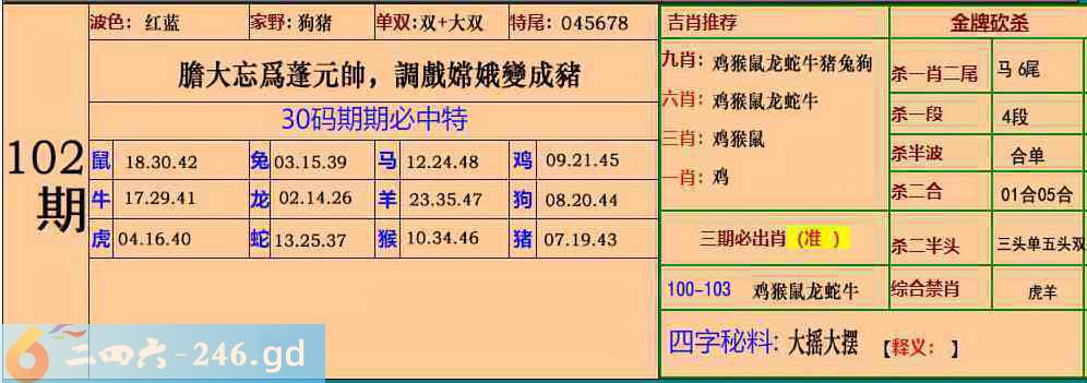 102期:30码期期必中特
