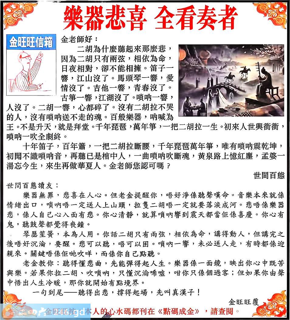 106期:金旺旺信箱彩民推荐→→《樂器悲喜 全看奏者》
