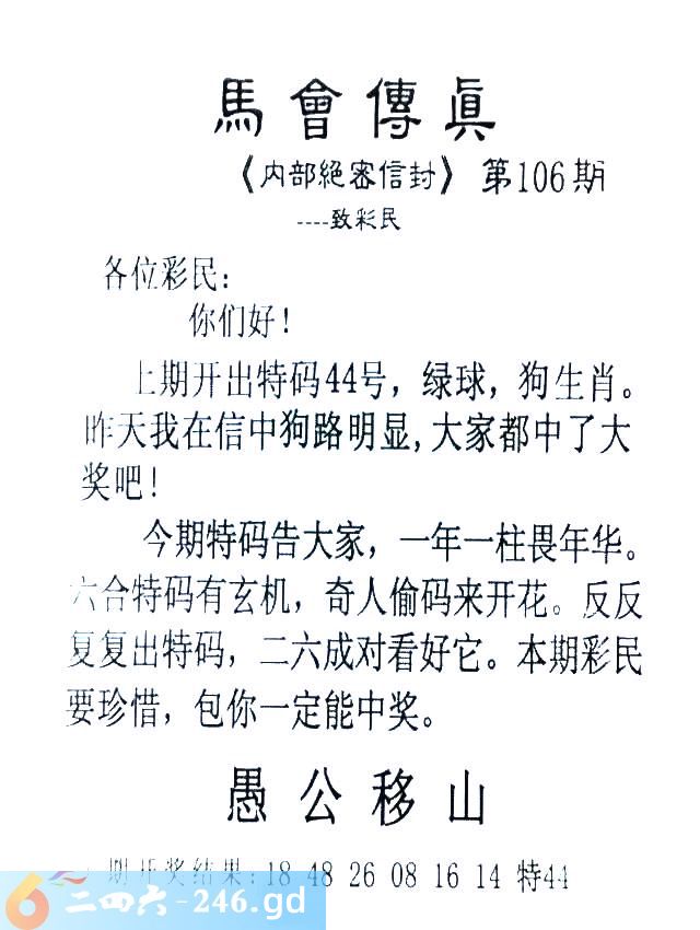 106期:首发推荐:≮馬會傳眞≯→(香港正版)