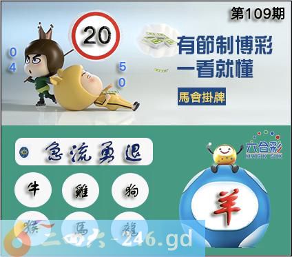 109期正版彩图挂:20 爆:羊 挂牌成语:急流勇退 挂牌出肖:牛鸡狗猴马龙