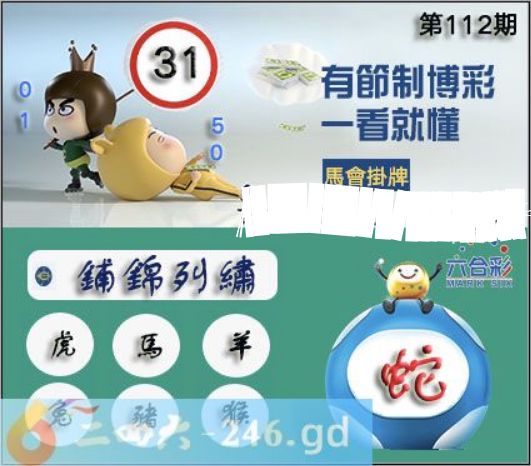2025年112期正版彩图挂:31 爆:蛇 挂牌成语:铺锦列绣 挂牌出肖:虎马羊兔猪猴