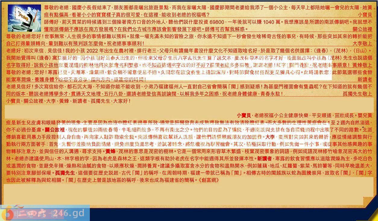 【4】.老總好:初次來信.見信佳!我的小孩2022年出生在農村裡,排行老三,父母只有讀幾年書沒什麼文化不知道取啥名好,於是取了幾個名供選擇:(逢春),(茂林),(日山)。我開始覺得叫(逢春)寓意挺好的,因小孩剛好是春天出生的但後來父母拿生辰八字去找先生算了說欠木,要改有帶木的名字才好,後面就改叫小孩為(茂林)先生也說這個名字取得好,說我小孩他就要茂盛的樹林他將來就會名利雙收。也不知道這個名字改的好不好?還望老總多多指教,謝謝老總!紅字:關門養寵,祝老總事事順意!黄蜂敬上