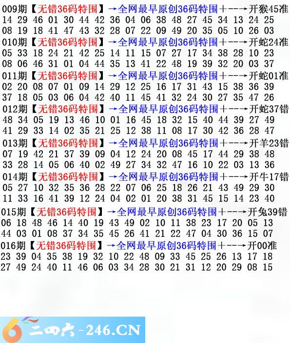 016期:无错36码
