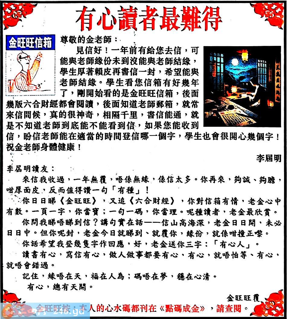 117期:金旺旺信箱彩民推荐→→《有心讀者最難得》