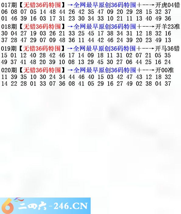 020期:无错36码