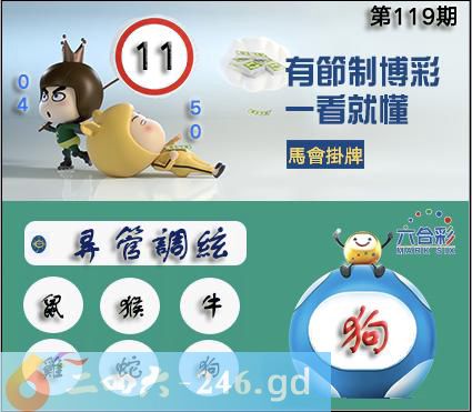 119期正版彩图挂:11 爆:狗 挂牌成语:弄管调弦 挂牌出肖:鼠猴牛鸡蛇狗