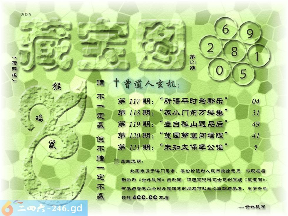 121期藏寶圖 新:未知太保李公谁 老:起犯春霜壹泾寒 禁:马 禁:3尾 玄機字:《跃》