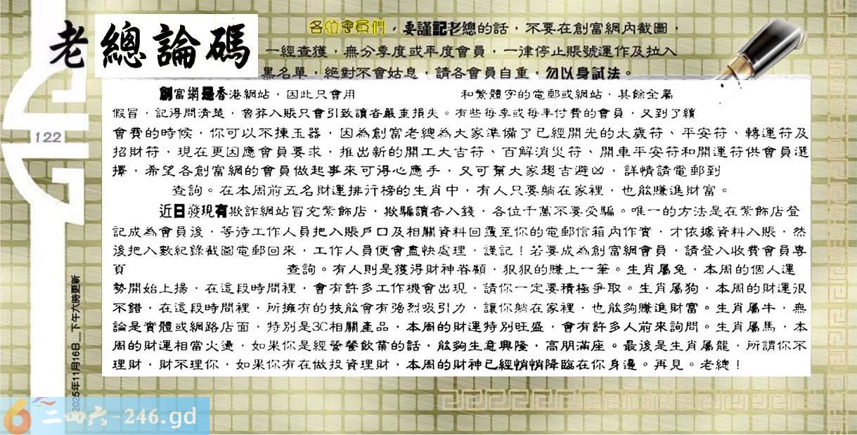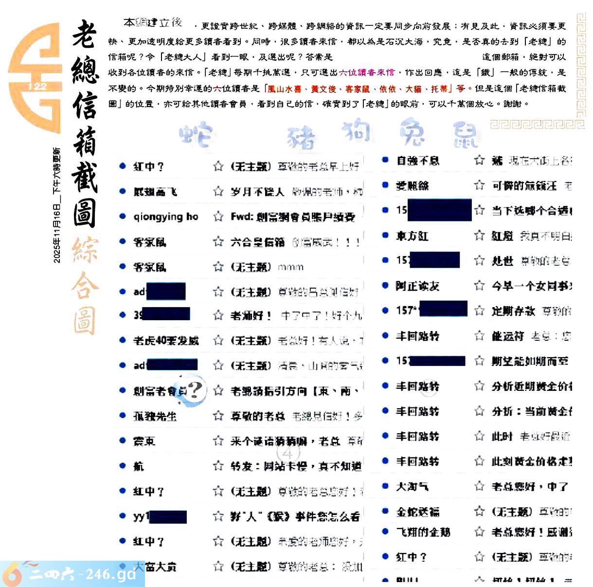 122期:六合皇金句/老总论码/萧公子/林大师/五行夺码/老总信箱截图