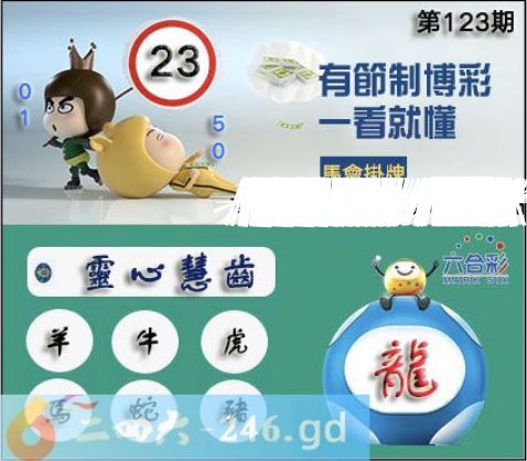2025年123期正版彩图挂:23 爆:龙 挂牌成语:灵心慧齿 挂牌出肖:羊牛虎马蛇猪