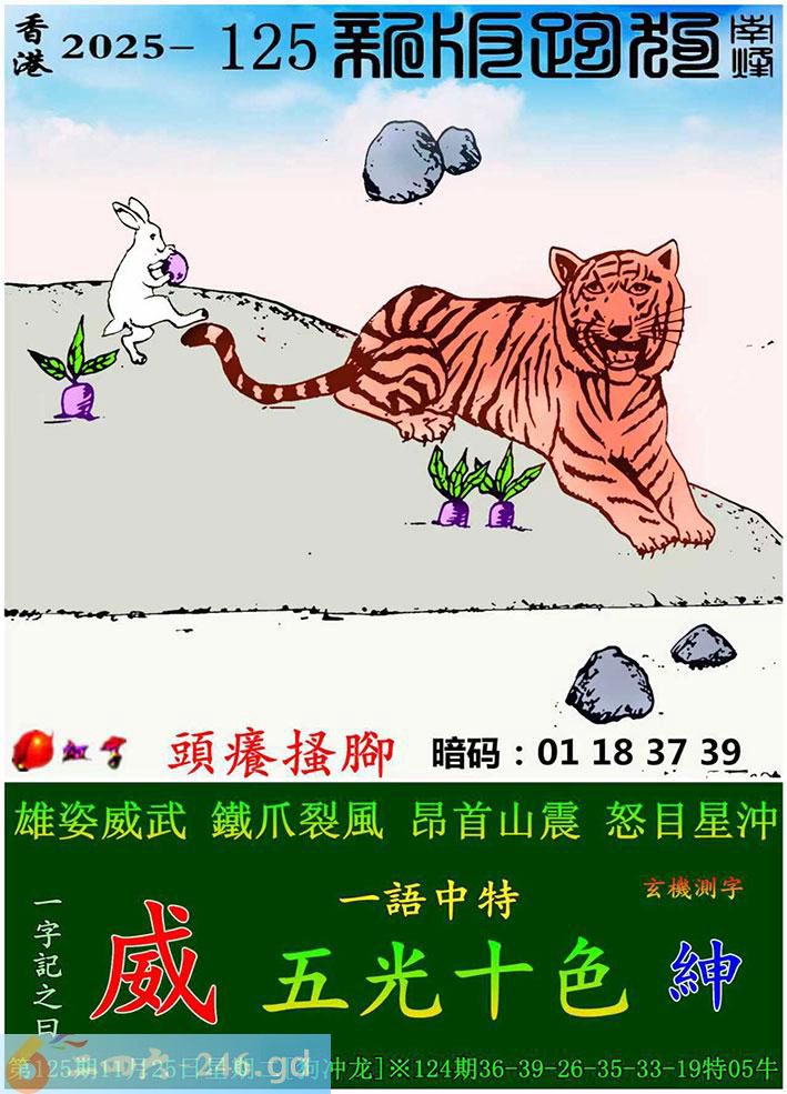 125期跑狗一字記之曰:【威】 雄姿威武,鐵爪裂風。 昂首山震,怒目星沖。