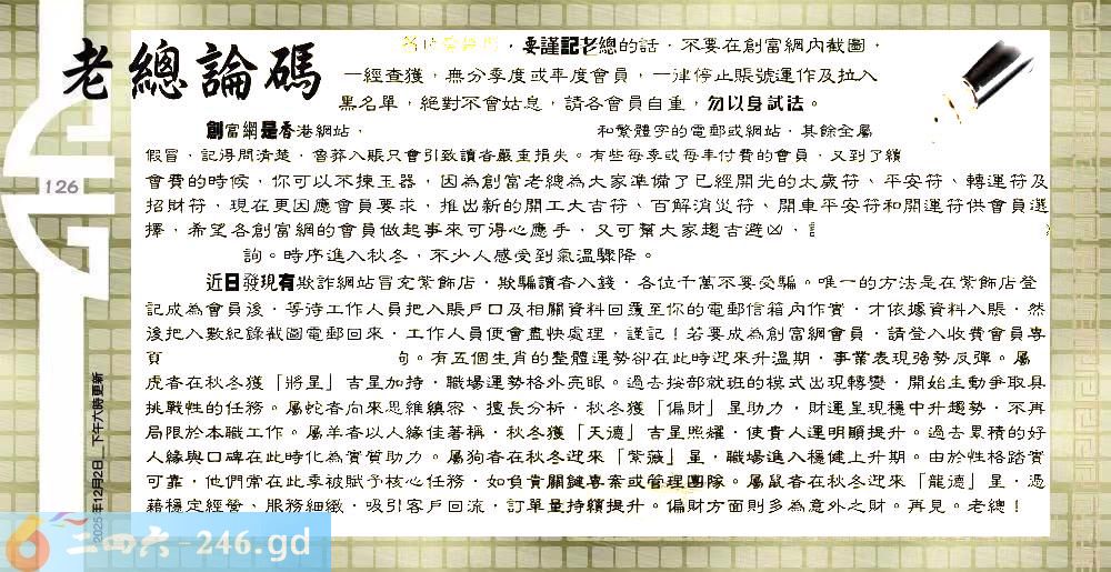 126期:六合皇金句/老总论码/萧公子/林大师/五行夺码/老总信箱截图