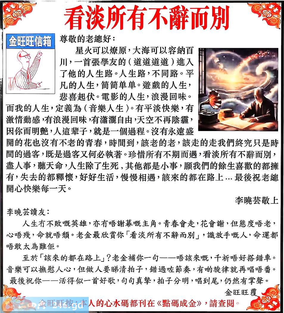 128期:金旺旺信箱彩民推荐→→《看淡所有不辭而別》