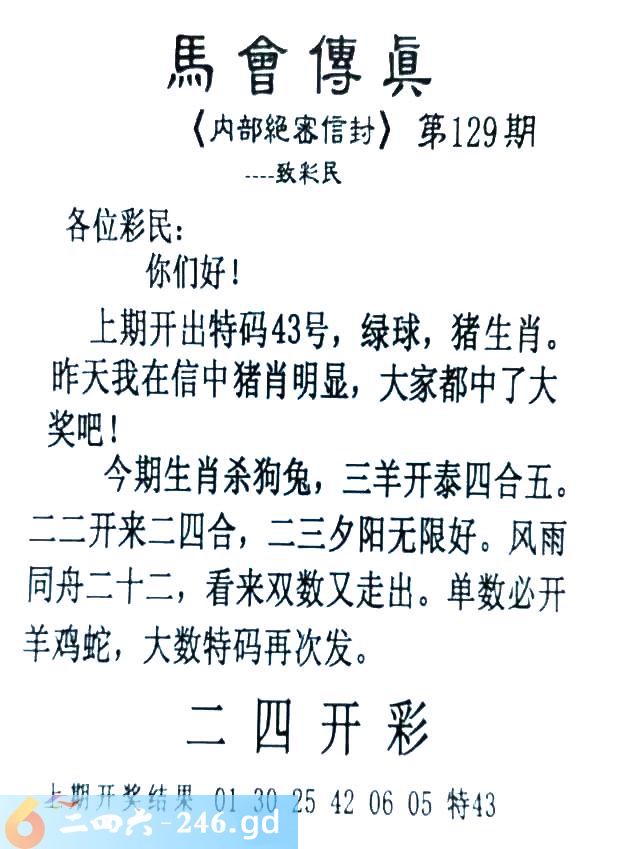 129期:首发推荐:≮馬會傳眞≯→(香港正版)
