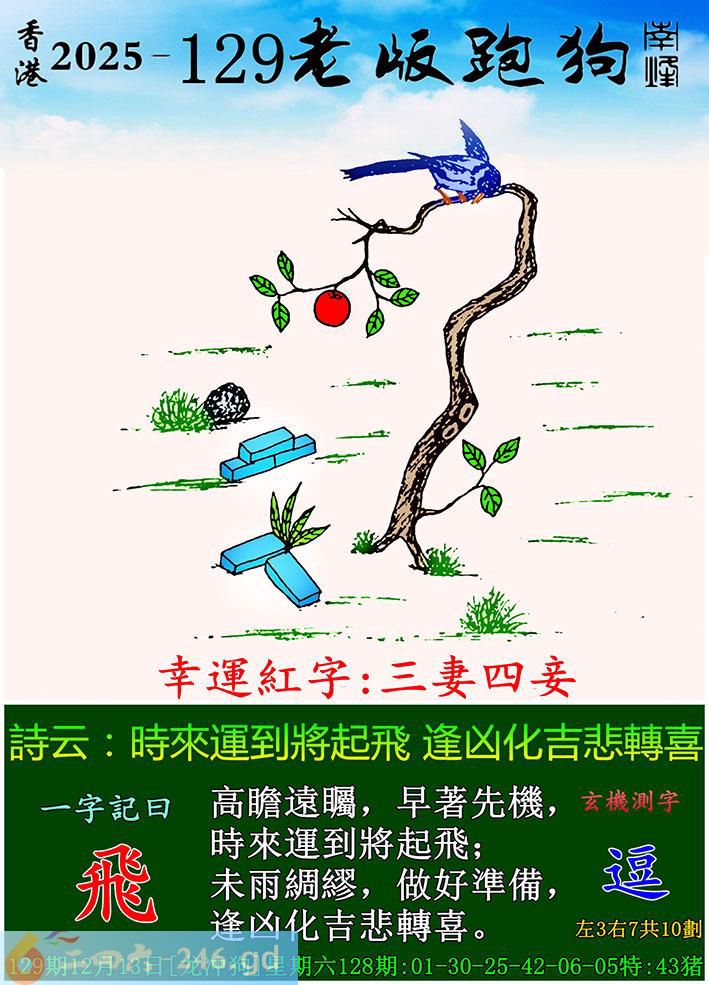 129期老版跑狗一字記之曰:【飛】