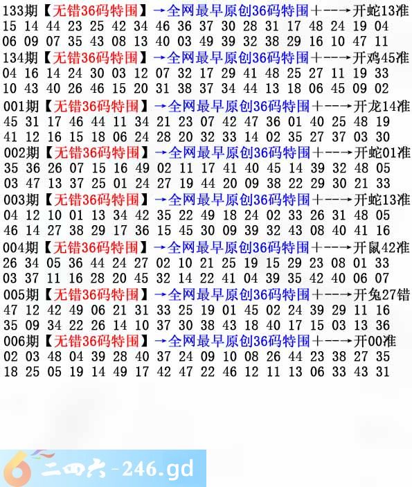 006期:无错36码