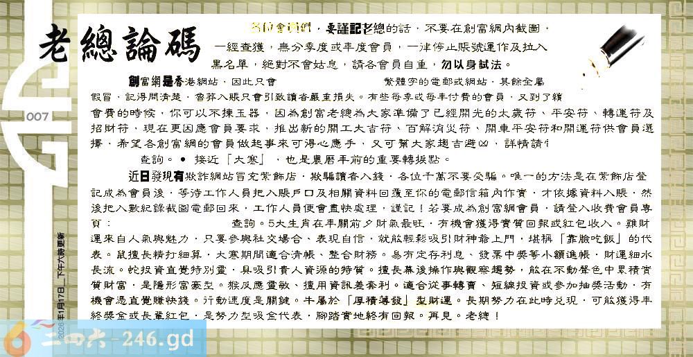 007期:六合皇金句/老总论码/萧公子/林大师/五行夺码/老总信箱截图