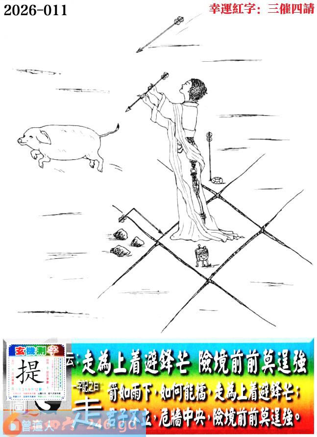 011期老版跑狗一字記之曰:【走】 詩雲:走為上着避鋒芒,險境前前莫逞強。