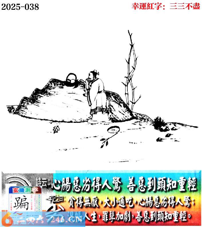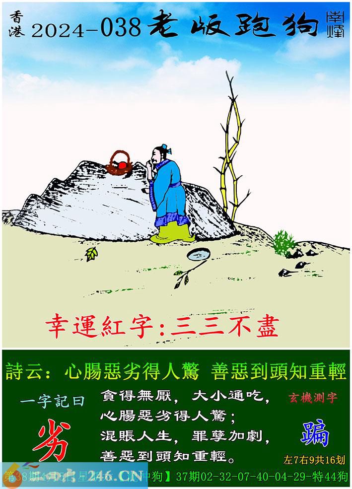 038期老版跑狗一字記之曰:【劣】 詩雲:心腸惡劣得人驚,善惡到頭知重輕。