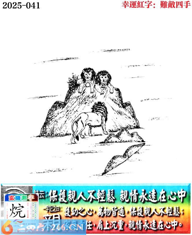 041期老版跑狗一字記之曰:【親】 詩雲:保護親人不輕鬆,親情永遠在心中。